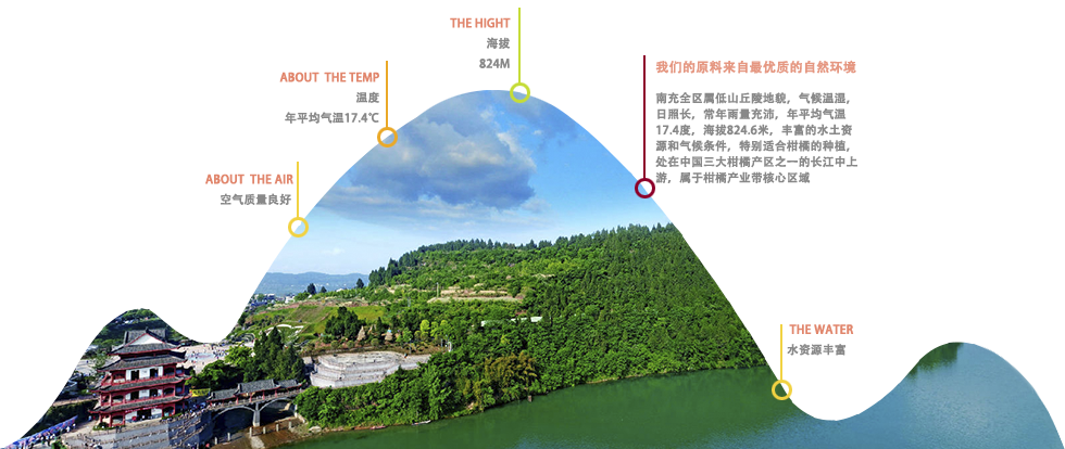 四川位于西南腹地,地處長江上游,東臨重慶,南接云貴,西銜西藏,北連陜甘,境內秀麗,物產豐富,是全國的農產品供應大省,自古被譽為天府之國,南充是川東北中心城市,位于嘉陵江中游,是古老嘉陵江畔的明珠,久負盛名的水果之洲,南充屬全區(qū)屬低山丘陵地貌,氣候溫濕,日照長,常年雨量充沛,年平均氣溫17.4度,海拔824.6米,豐富的水土資源和氣候條件,特別適合柑橘的種植,處在中國三大柑橘產區(qū)之一的長江中上游,屬于柑橘產業(yè)帶核心區(qū)域